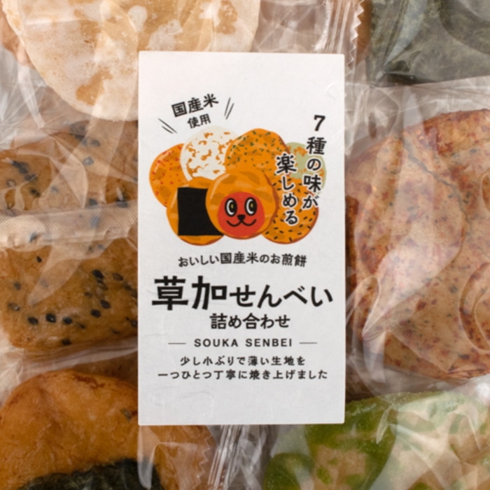 原材料名:【ごま】うるち米(国産)、醤油(小麦・大豆を含む)、ごま、砂糖、でん粉、昆布エキス、みりん/調味料(アミノ酸等)、カラメル色素 【醤油】うるち米(国産)、醤油(小麦・大豆を含む)、砂糖、昆布エキス、みりん、でん粉/調味料(アミノ酸等) 【あおさ】うるち米(国産)、醤油(小麦・大豆を含む)、あおさ粉、砂糖、昆布エキス、みりん、でん粉/調味料(アミノ酸等) 【海苔】うるち米(国産)、醤油(小麦・大豆を含む)、海苔、砂糖、昆布エキス、みりん、でん粉/調味料(アミノ酸等) 【白砂糖】うるち米(国産)、砂糖、食塩、乾燥卵白(卵を含む) 【抹茶】うるち米(国産)、砂糖、抹茶、食塩、乾燥卵白(卵を含む) 【唐辛子】うるち米(国産)、醤油(小麦・大豆を含む)、唐辛子、あおさ粉、砂糖、昆布エキス、みりん、でん粉/調味料(アミノ酸等)