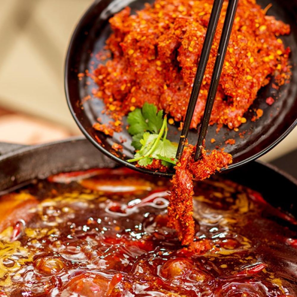 原材料名:ショートニング、唐辛子、食塩、豆板醤(唐辛子、 そら豆、食塩、小麦粉)、長ねぎ、山椒、ニンニク、しょうが、香辛料、酵母エキス、トウチ(大豆、食塩、小麦粉)、酒精、氷砂糖、調味料(アミノ酸)