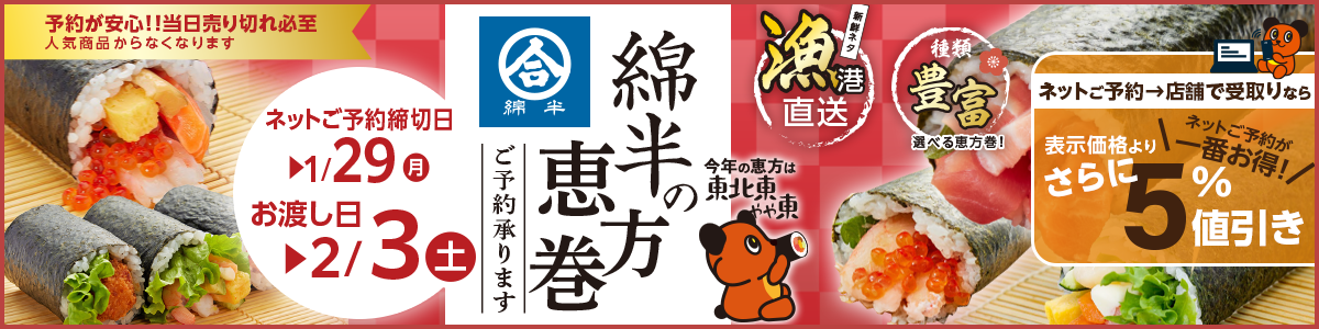 899円(税込970円) ▲この商品のご予約はこちら鮮魚寿司 8種の海鮮恵方巻 ハーフ6まぐろ・まぐろたたき・たい・サーモン・穴子・いか・たまご・えび・大葉・ねぎ -