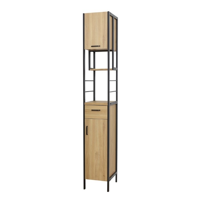 スチールと木目調の組み合わせ。スタイリッシュで、圧迫感のないデザインです。