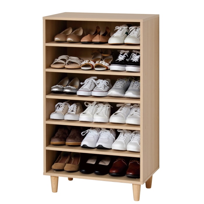 天然木製のおしゃれな脚付き。 底板の下は約11cmの空間があり、湿気がこもりにくく靴を置くこともできます。 上下連結可能(連結・転倒防止部品付)