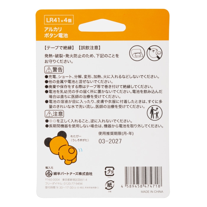 アルカリボタン電池 [1パック]アルカリボタン電池 LR41-4BS