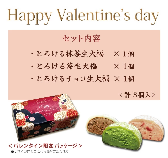 | 商品名 | とろけるバレンタイン生大福<3種入> |
