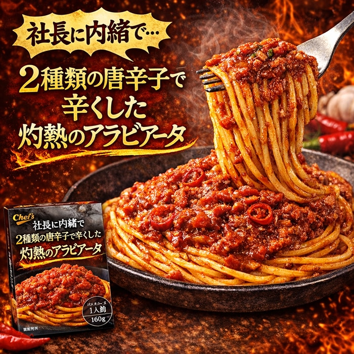 特徴:赤と青の2種類の唐辛子を使い、トマトのフレッシュ感にこだわった辛くて酸っぱくて癖になるアラビアータ
