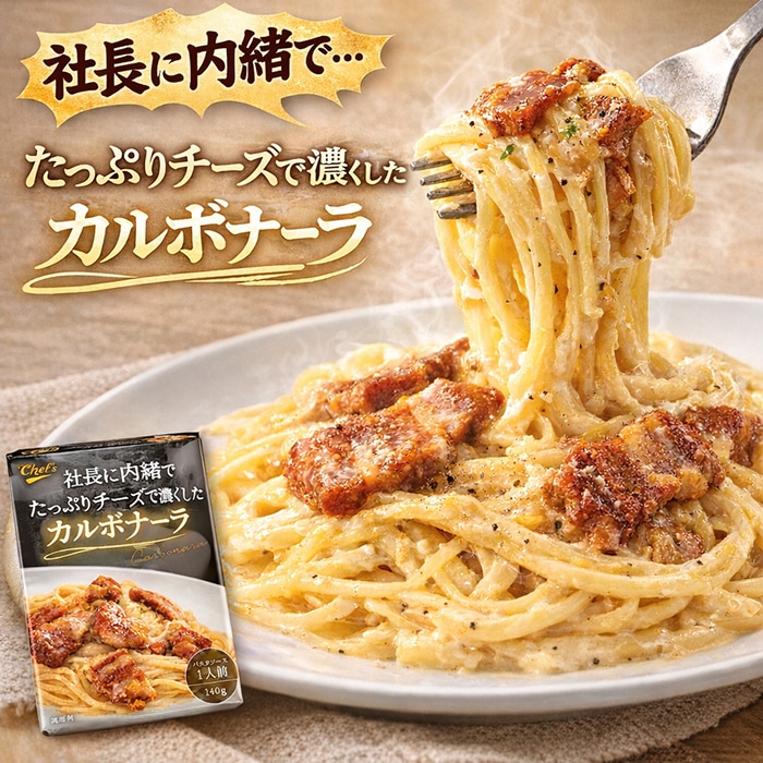 原材料名:生クリーム(国内製造)、ベーコン、乳等を主要原料とする食品、牛乳、植物油脂、脱脂粉乳、醤油、チーズ加工品、バター、米糖化調味料、ナチュラルチーズ、香辛料、食塩/増粘剤(加工澱粉、増粘多糖類)、調味料(アミノ酸)、トレハロース、乳化剤、㏗調整剤、リン酸塩(Na)、ガゼインNa、香料、くん液、着色料(クチナシ、コチニール)発色剤(亜硝酸Na)、(一部に小麦・卵・乳成分・大豆・豚肉を含む)