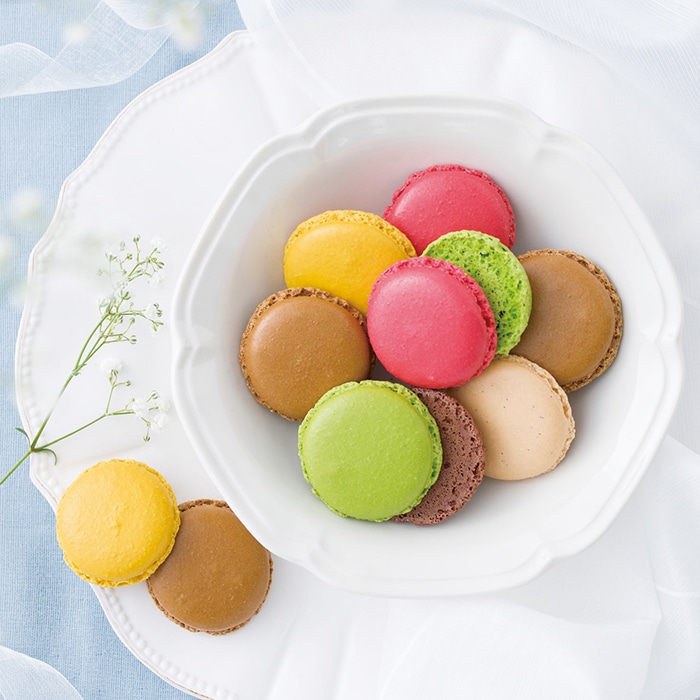 ダロワイヨこだわりのマカロンコック(生地の部分)。アーモンドの豊かな香りはそのままに、サクッと焼きあげました。