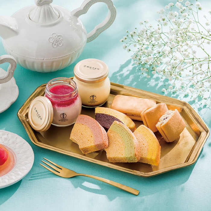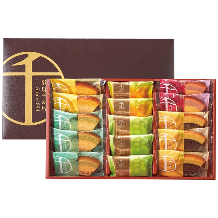 内容:銀座フルーツクーヘン(イチゴ&ミルク・レモン&はちみつ各2個・メロン&ミルク・バナナ&チョコ各3個)・銀座フルーツサンド(柚子2個・マスカットレーズン3個)