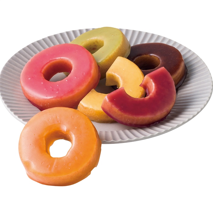 和菓子職人が考案した、餡でコーティングしたバウムクーヘンです。ミニサイズのバウムにさまざまなフルーツを使用した餡をたっぷりとかけました。見た目もカラフルな和洋スイーツです。