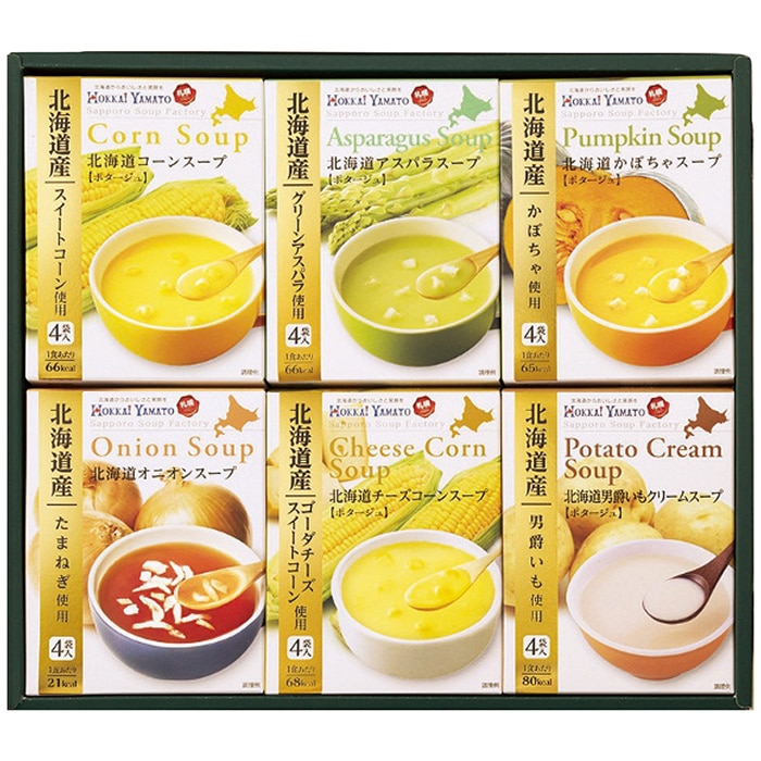 北海道の美味しさをギュッと詰め込んだスープのコレクションです。6種類のスープが楽しめます。