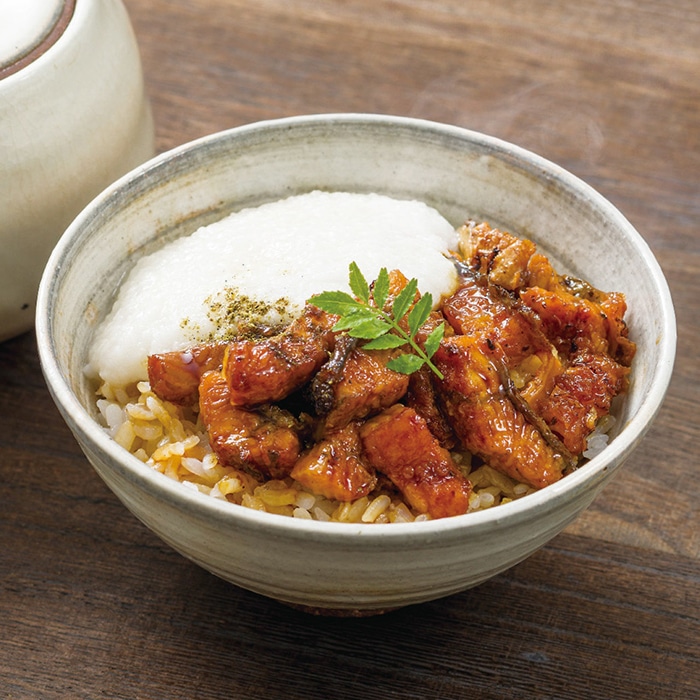 内容:うなぎ蒲焼(刻み)50g・とろろ50g・たれ20ml・山椒0.2g各3個