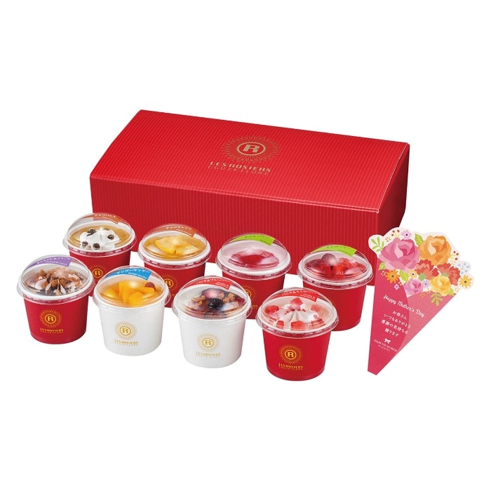 一つ一つ手作業でトッピングした8種類のバラエティ豊かな彩りと味を楽しめる人気のアイスギフトです。フランス国家最優秀職人章「M.O.F」受章の女性天才シェフ、アンドレ・ロジェ監修。母の日のメッセージをつけてお届けいたします。
