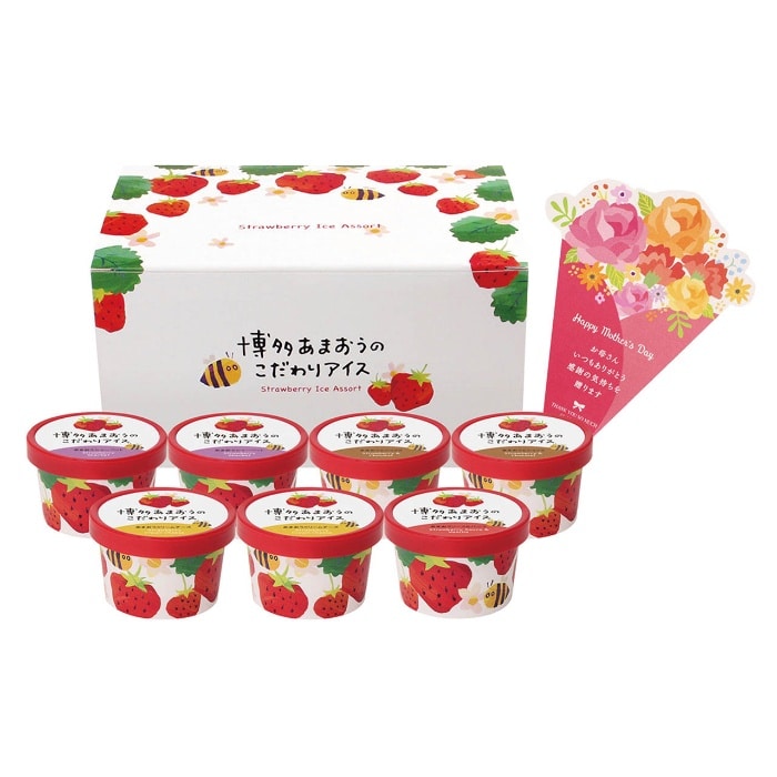 福岡の農家さんが愛情たっぷりに育てた「博多あまおう」をとことん楽しむアイスです。苺と相性のよい素材を選び、全く異なる4つの味わいに仕上げました。あまおうの魅力がぎゅっと詰まった、大人から子どもまで幅広く愛されるアイスです。母の日のメッセージをつけてお届けいたします。