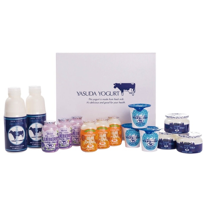 内容:ドリンクヨーグルト500ml×2、ブルーベリーヨーグルト、温州みかんヨーグルト、プレーンヨーグルト各150g×各3、とろけるヤスダヨーグルト85g×3