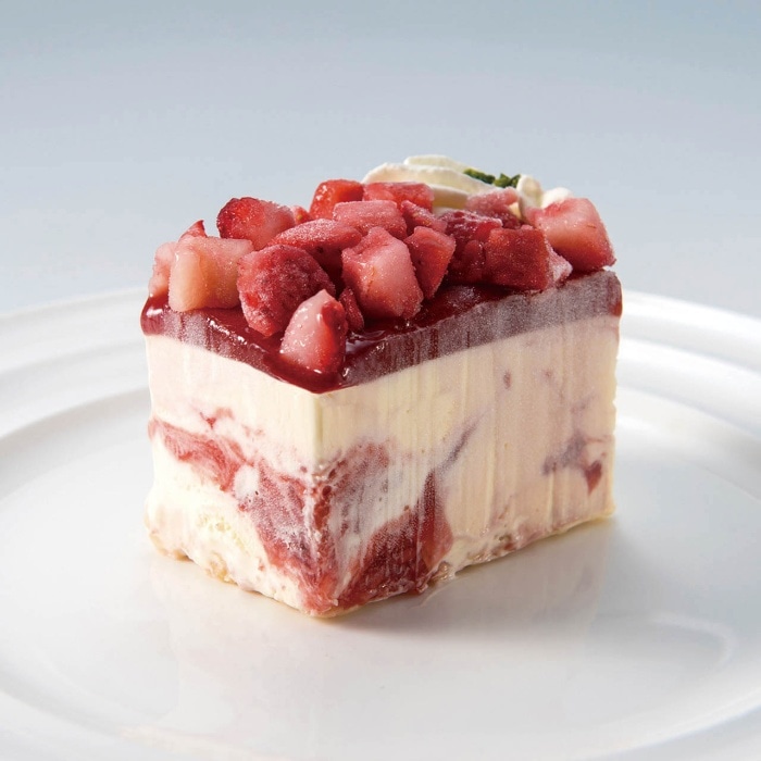 濃厚なバニラアイスに甘酸っぱいストロベリーソースをミックス。底に敷きつめたクランチのサクサク食感がアクセントです。いちごたっぷりで、見た目にも華やかです。