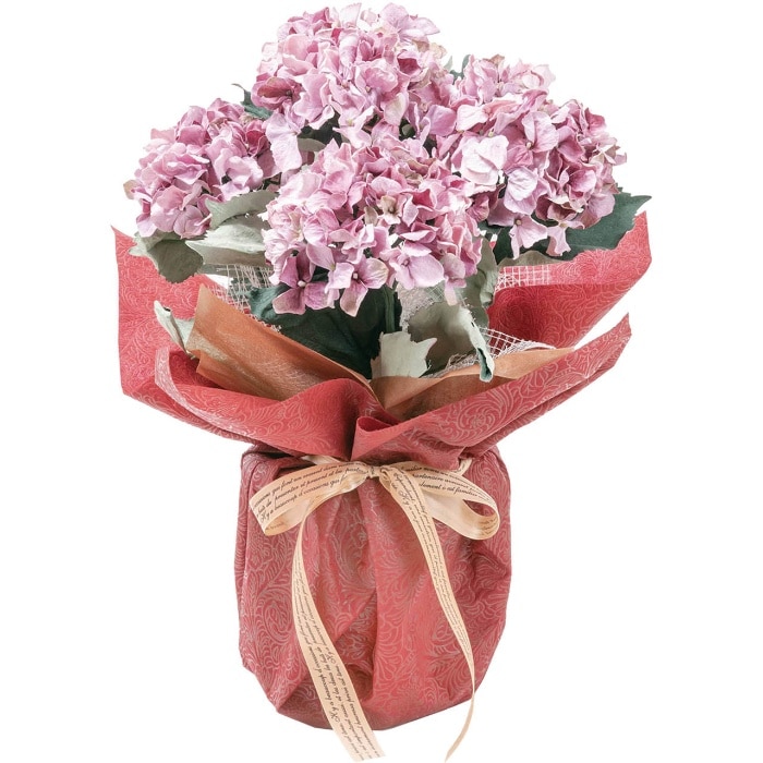豪華で立派な紫陽花(アジサイ)。水やり不要でお手入れ簡単なので受け取られた方もストレスフリー。空気をきれいにすると言われるSC触媒加工済です。 注意事項 鉢のラッピングは商品の一部となります。商品到着後、鉢のラッピングは外さずにご鑑賞ください。