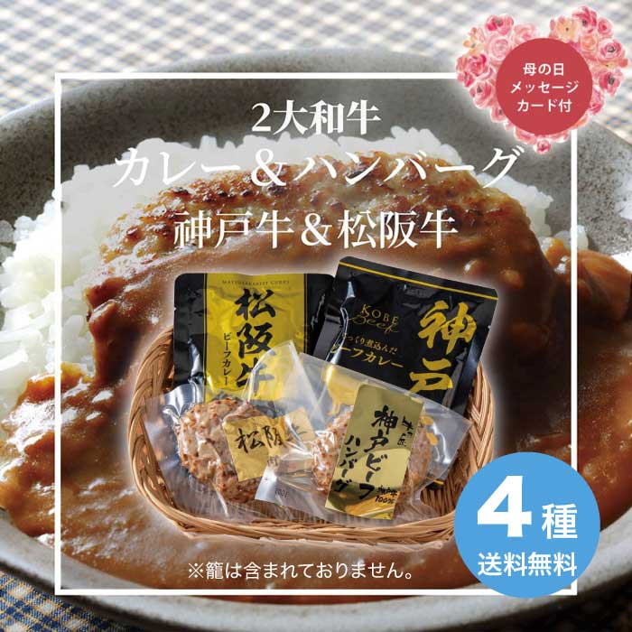 日本が世界に誇る2大和牛”神戸牛・松阪牛”をハンバーグ・カレーの詰合せセットにしました!それぞれを100%使用したハンバーグ、肉がトロトロに溶けるまで野菜とじっくり煮込んだビーフカレーをお楽しみください!