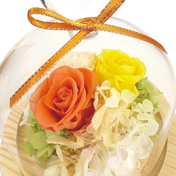 内容:プリザーブドフラワー、ドライフラワー、フローラルフォーム、リボン、ガラス、木
