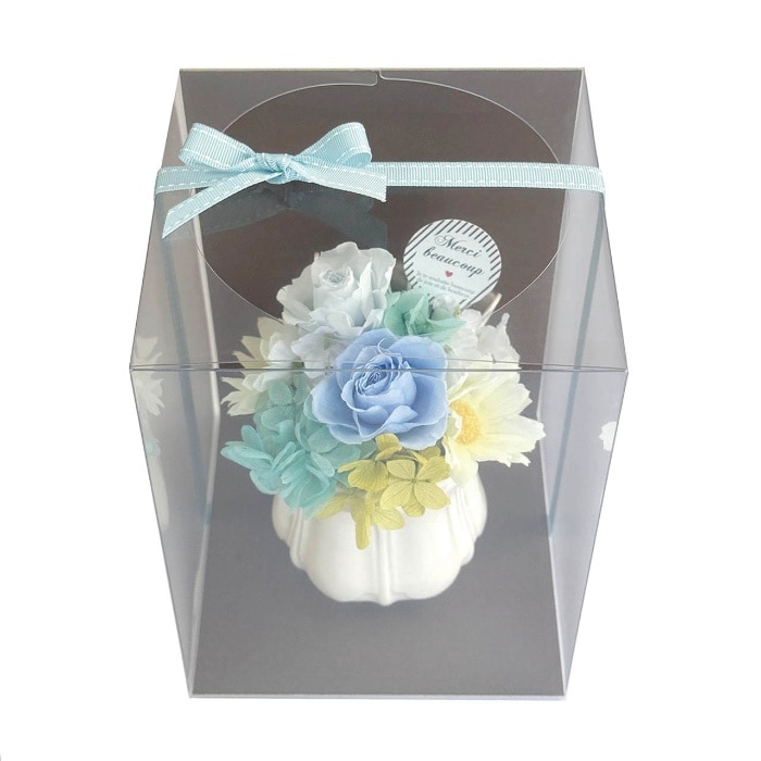 内容:プリザーブドフラワー、ドライフラワー、アーティフィシャルフラワー、リボン、紙ピック、フローラルフォーム、陶器