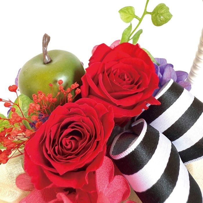 内容:プリザーブドフラワー、ドライフラワー、アーティフィシャルフラワー、リボン、紙ピック、フローラルフォーム、柳、塩化ビニル