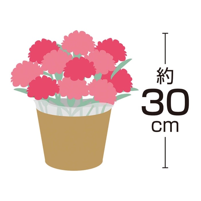 内容:カーネーション(ホットハート)5号1鉢、高さ:約30cm、バスケットもしくはラッピングバッグ、取扱いの手引き