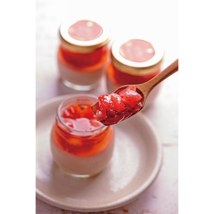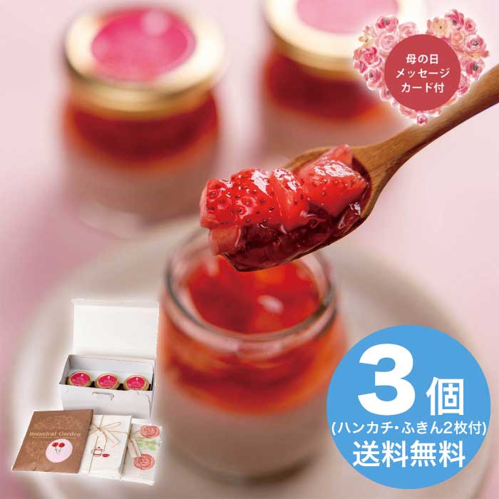 新鮮なミルクと濃厚な生クリームにいちご果汁を加えた優しい味わいのミルクプリンに、完熟した生いちごをふんだんに使用したみずみずしいジュレを重ねたプリンと今治タオルハンカチとかや生地ふきんをセットにしました。