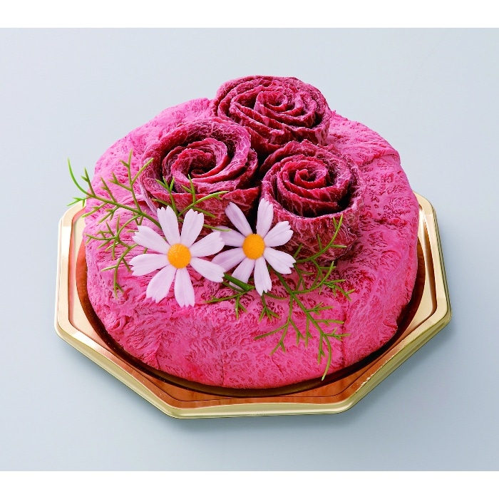 ●松阪牛お肉ケーキ:松阪牛を贅沢に使用して、ケーキ型に盛り付けました。モモ・肩ロースの2種類を食べ比べることができます。お花型盛り付け部分(モモ)は「焼肉」で、台の盛り付け部分(肩ロース)は「焼しゃぶ」や「すき焼き」などでお楽しみいただけます。●ゆびさきトング:あなたの指のかわりに食材をつかんでくれるトングです。自分の指のような感覚で自然に使えます。