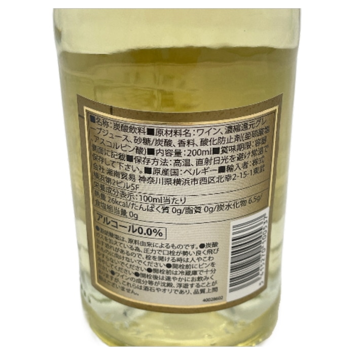 原材料名:ワイン、濃縮還元グレープジュース、炭酸、香料、酸化防止剤(亜硫酸縁、アスコルビン酸)