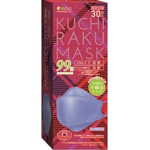 正規取扱店 KUCHIRAKU MASK パープル 30枚入 iSDG クチラク kuchiraku ダイヤモンド型4562355181255