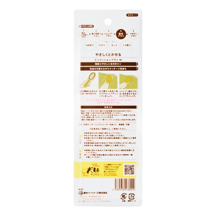 丸いピン先でやさしく毛並みを整える。