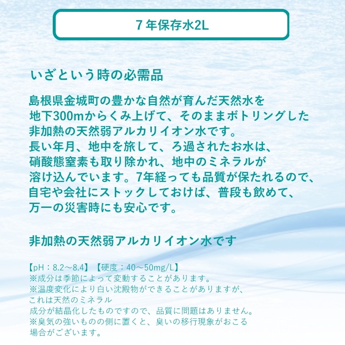 備蓄 備蓄水 水 保存水 防災 7年保存 ストック 天然水 非加熱 天然弱アルカリイオン水 災害時にも安心