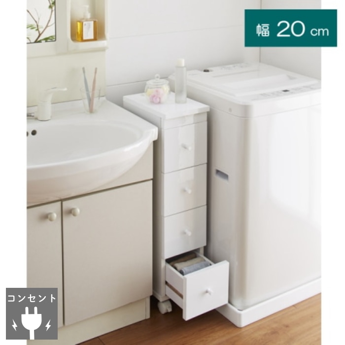 洗濯機横の15cm~20cmのすきまは、スリムラックの収納棚が大活躍します。