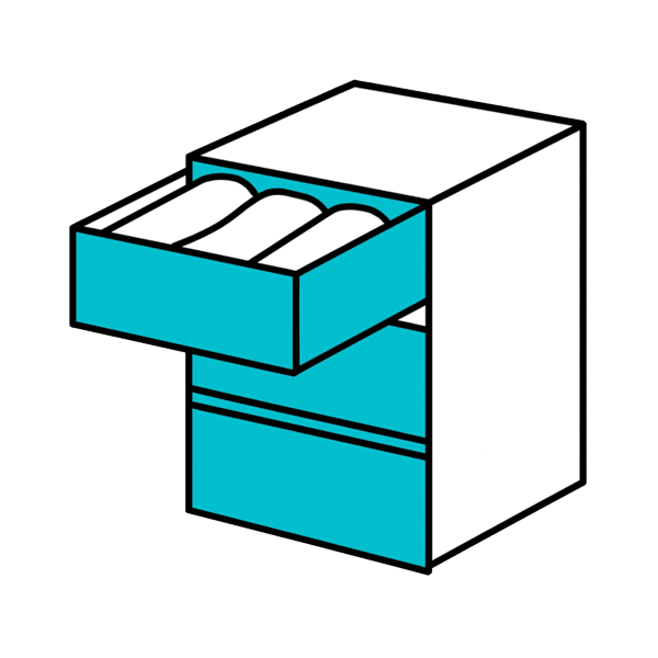 - 下着やストック品 → 扉付き収納やボックスへ