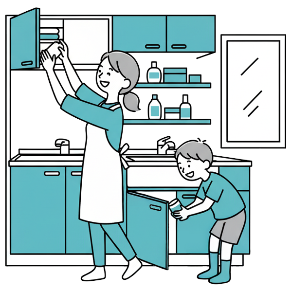 - 家族みんなが「片付けやすい」仕組みづくりが大切