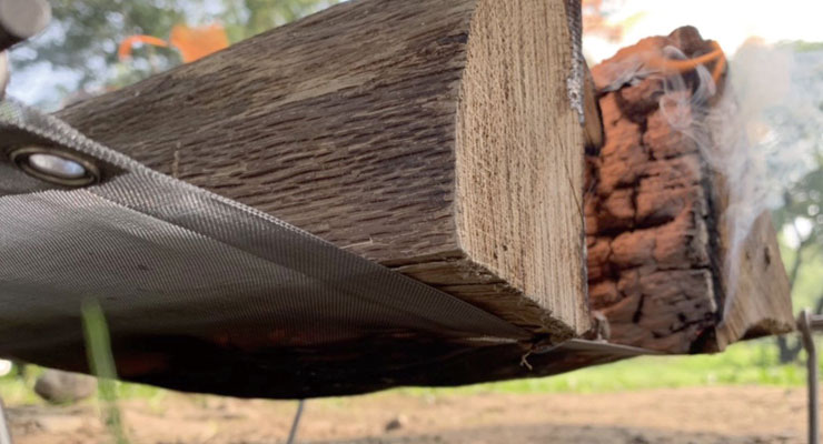 大地へのダメージを最小限に抑える、ブッシュクラフターご用達の「直火」に近い地上高の焚き火台です。