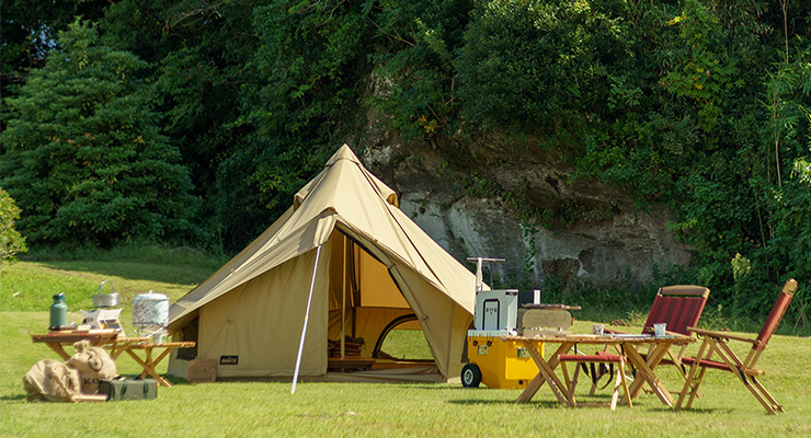 ソロキャンパーから絶大な人気を誇るステイシー。コンパクト収納なのに、前室空間をしっかり確保。サイドファスナーはゴム付きで、パネル開閉時に裾が汚れません。