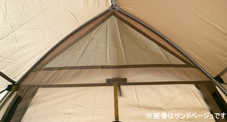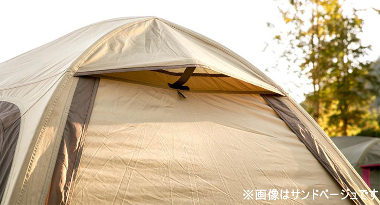 どんな色にも合うナチュラルなカラーリングでブラックフレームがシックな印象。大きなメッシュ窓はフラップ付きで開閉可能椅子やコットも置けるくつろぎの広々大空間です!!