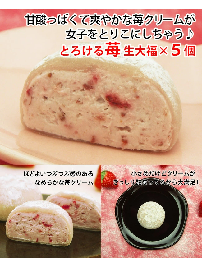 とろける抹茶生大福×5個、とろける苺生大福×5個(1個 約38g 直径約5cm)