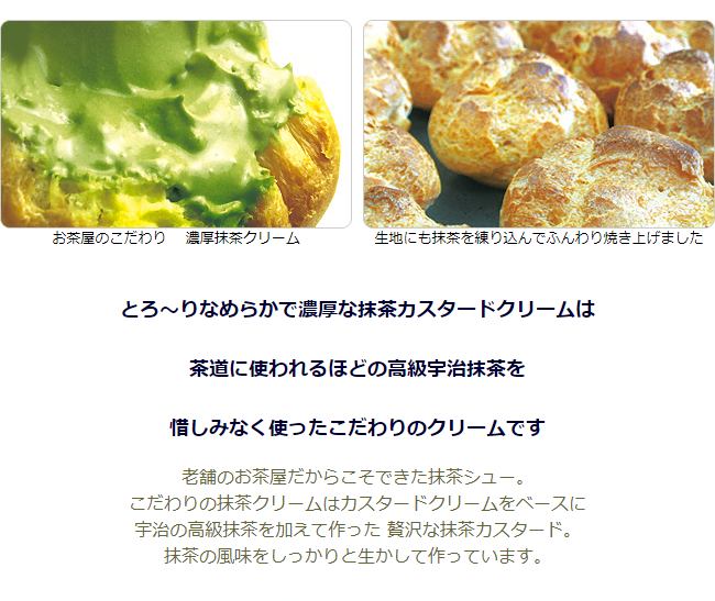 宇治抹茶の豊かな味と香り・お茶屋の特製シュークリーム