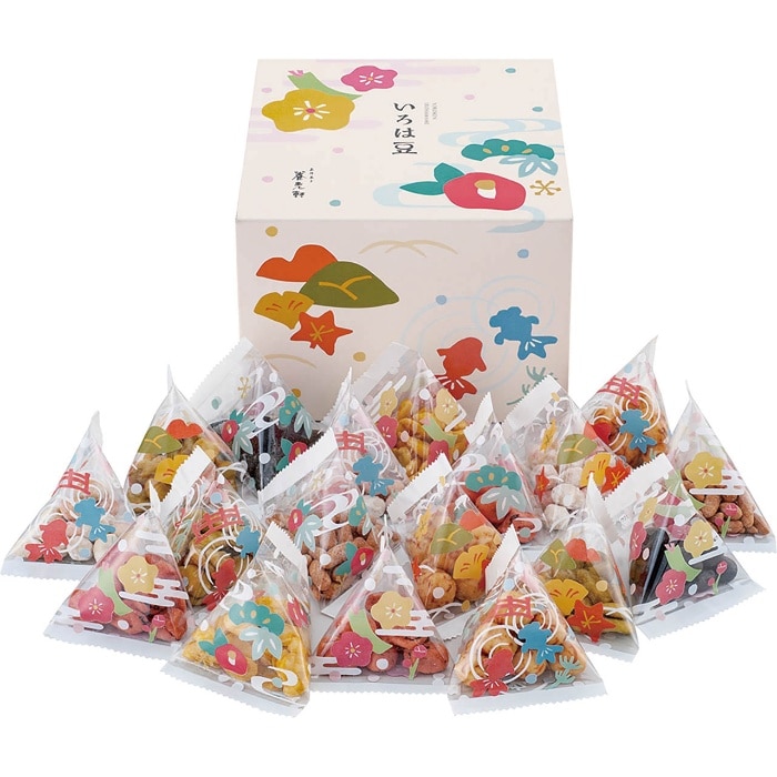 甘味系から塩味系まで、多彩なラインナップをお楽しみいただける、華やかで彩り豊かな豆菓子セットです。「豆(まめ)に過ごせますよう」の気持ちが伝わる心温まるギフトです。