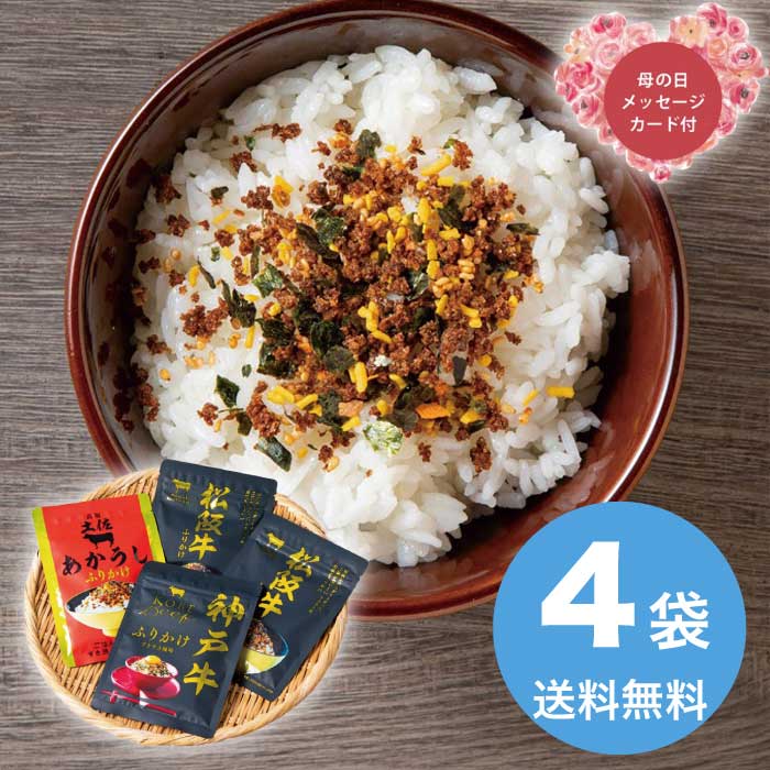 内容:和牛ふりかけ30g×4(松阪牛×2、神戸牛、土佐あかうし×各1)
