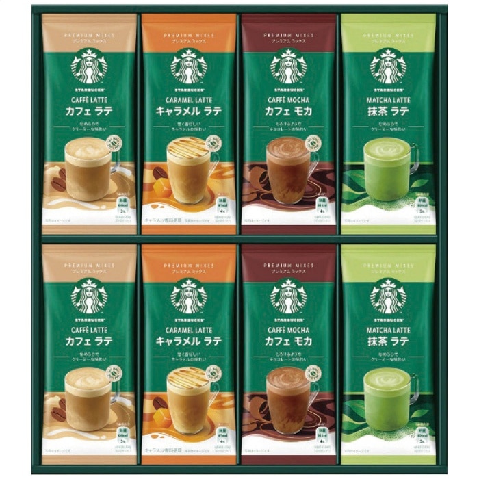 カフェラテ好きのご家庭にぴったりな贈り物。スターバックスの味わいをご自宅で簡単に楽しめるプレミアムミックスが入ったギフト。