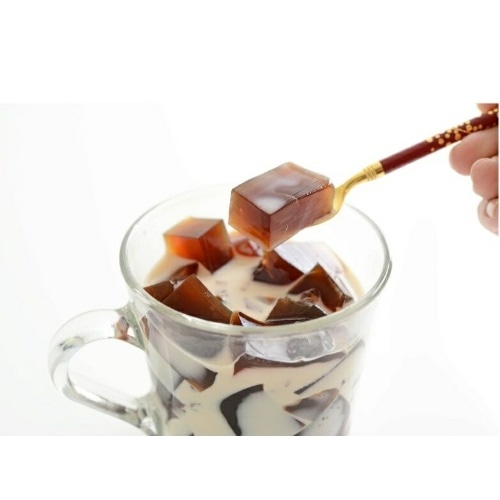 原材料名:糖類(砂糖、ぶどう糖、粉飴)、コーヒー、寒天、ゲル化剤(増粘多糖類)、酸味料、香料、(原材料の一部に大豆を含む)