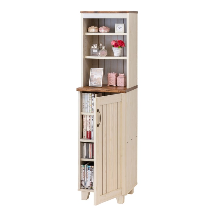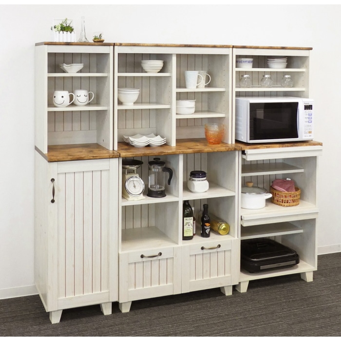 狭い場所にも置けるスリムタイプ。高さ約151cmと低め設計なので、圧迫感なくお使いいただけます。 リビングでもキッチンでも使え、シリーズで組み合わせれば、温かみのあるカントリー調の空間が広がります。