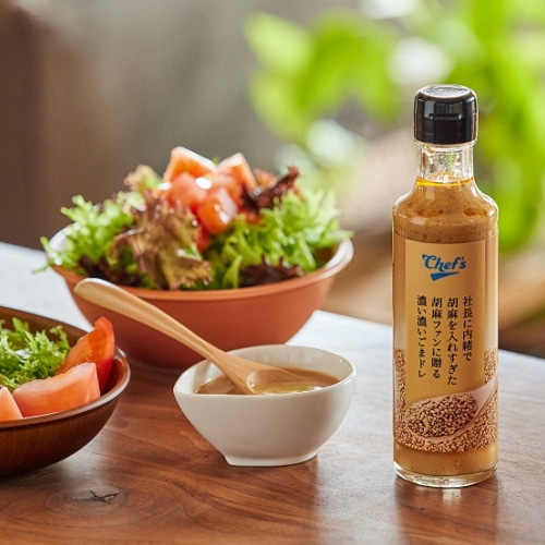 特徴:綿半のシェフと開発した社長に内緒で胡麻を入れすぎた胡麻ファンに贈る濃い濃いごまドレッシング