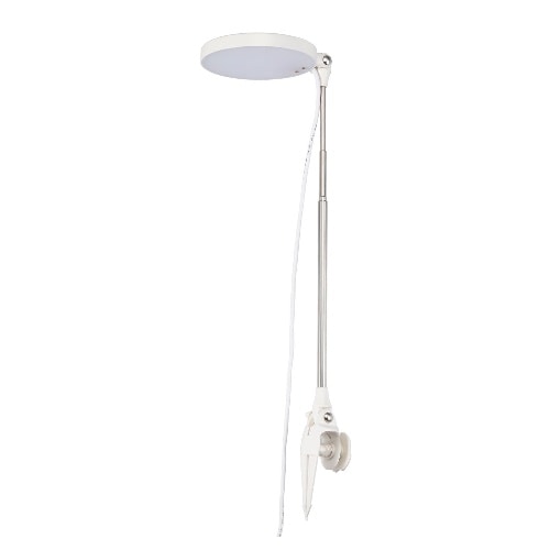 クリップで鉢の縁に固定する植物育成ライト。タイマー設定、明るさ調整のコントローラー付き。電源はUSBです。