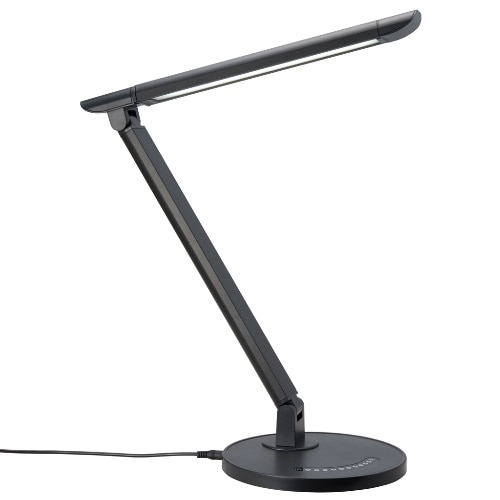 ●カラー:ブラック●光源:白色LED×21灯(交換不可) ●スイッチ:タッチセンサースイッチ●全光束:810lm ●色温度:6000K ●照度:1000lux(最大照度の場合) ●パッケージ形態:化粧箱 ●コード長(m):約1.5(アダプター接続時) ●消費電力(W):7.5 ●パッケージサイズ(mm):(W)215*(H)445*(D)105 ●本体寸法(mm):(W)350*(H)415*(D)180 ●本体重量(g):約915(アダプター込)