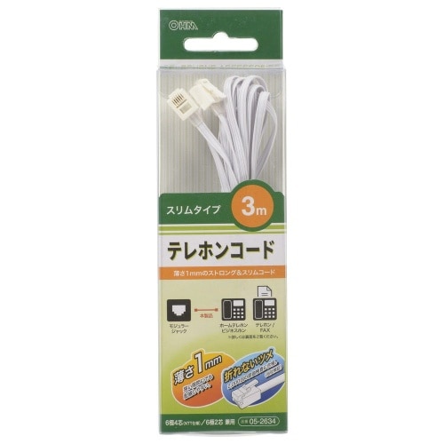 テレホンコード3m TEL-C2634S ホワイト [1個入り]TEL-C2634S