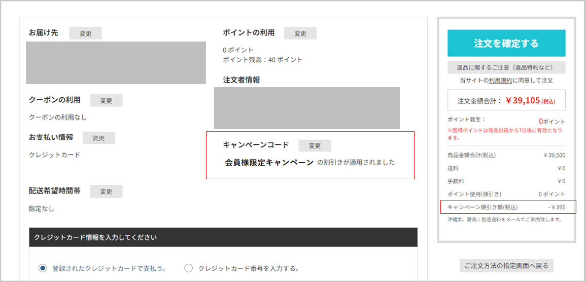 キャンペーンコードご利用時は、ご注文確定前にキャンペーンコードをご入力ください。