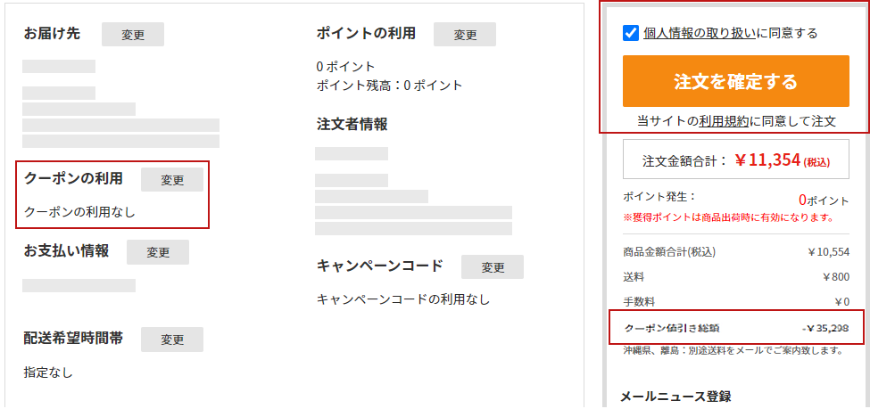ご注文の確認画面で、クーポンコードまたはキャンペーンコードを入力する