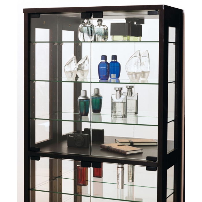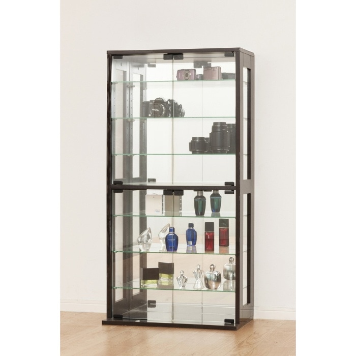 背面はカガミ張り、前面・側面・棚板がガラスですので透明感があり、お気に入りのコレクションを美しくディスプレイできます。